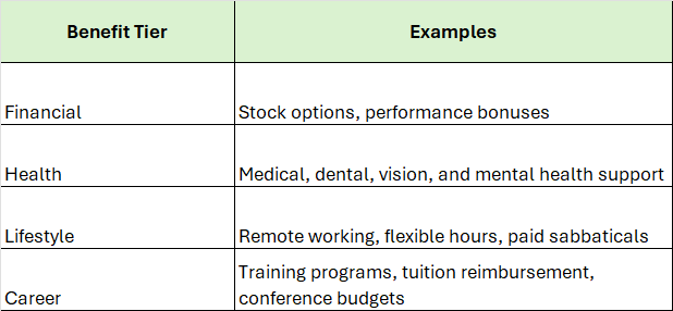 Unique benefits and work-life balance perks deserve a dedicated space in your post. Go well beyond standard health insurance and PTO mentions. Highlight career advancement, remote working flexibility, wellness programs, equity options, and learning budgets. These details speak directly to what modern US candidates genuinely prioritize when evaluating any new opportunity.
